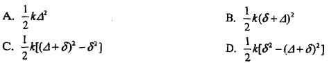单项选择题 如图4-70所示,常数为k的弹簧下挂一质量为m的物体,若物体从静平衡位置(设静伸长为δ)下降Δ距离,则弹性力所做的功为( )。