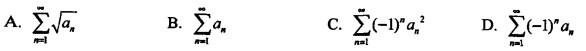 单项选择题 设0≤an≤1/n(n=1,2,…),下列级数中绝对收敛的是( )。
