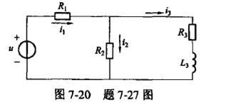 单项选择题 如图7-20所示电路,正弦电流i2的有效值I2=1A,电流i3的有效值I3=2A,因此电流i1的有效值A等于()。