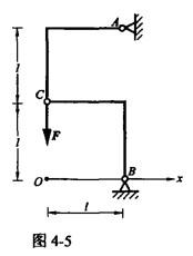 单项选择题 两直角刚杆AC、CB支承如图4-5所示,在铰C处受力F作用,则A、B两处约束力的作用线与x轴正向所成的夹角分