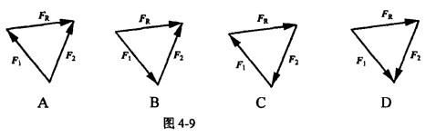 单项选择题 在图4-9所示四个力三角形中,表示FR= F1+ F2图是( )。