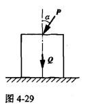 单项选择题 图4-29中,物块重力为Q,放在粗糙的水平面上,其摩擦角φ=20°,若力P作用于摩擦角之外,并已知α=30°