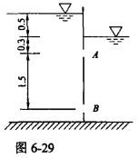 单项选择题 图6-29中,水池的隔墙上开有两个相同的小孔A和B,小孔直径5cm,流量系数μ= 0.62。上下游水位不变,