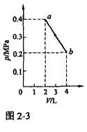 单项选择题 如图2-3所示,一定量的理想气体,沿着图中直线从状态a(压强p1=0.4MPa,体积V1=2L)变到状态b (压强p2=0.2MPa,体积V2=4L)。