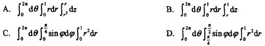 单项选择题 由曲面所围成的立体体积的三次积分为( )。