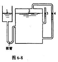 单项选择题 如图6-8所示,右侧水箱内为大气压强。 现将水箱封闭,升高左侧的水位调节器则1、2、3、4 水面关系有( )