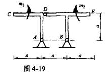 单项选择题 图4-19所示三铰支架上作用两个转向相反、大小相等且不为零的力偶m1和m2,支架自重不计。则支座B的约束力为( )。