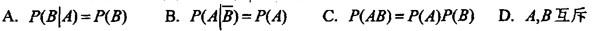 单项选择题 若P(A)>0, P(B)>0, P(A B)= P(A),则下列各式不成立的是( )。