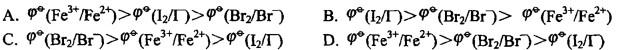 由此判断下列标准电极电势代数值从大到小的排列顺序正确的是( )。
