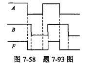 单项选择题 如图7-58所示,输出F与输入A、B的逻辑关系是( )。