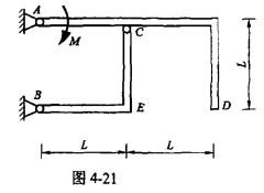 单项选择题 两直角刚杆ACD,BEC 在C处铰接,并支承如图4-21所示。若各杆重不计,则支座A处约束力的方向为( )。