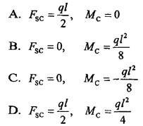 单项选择题 如图5-23所示梁,跨中C截面的剪力和弯矩值分别为()。