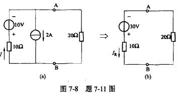 单项选择题 如图7-8所示,两电路相互等效,由图(b)知,流经10Ω电阻的电流IR=1A, 由此可求得流经图(a)电路中