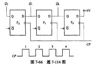 单项选择题 用3个D触发器组成的电路如图7-66所示,设Q2Q1Q0的初始状态为000,触发器F0的输入端接+5V表明D