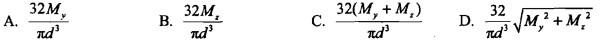 单项选择题 圆截面梁,横截面直径为d,弯矩在两个相互垂直方向的分量为My、Mz,且My>Mz>0,该截面上最大正应力为(