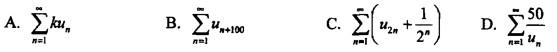 单项选择题 若级数收敛,则下列级数中不收敛的是( )。