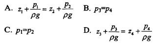 单项选择题 如图6-13所示,等直径管,考虑损失,A-A断面为过流断面,B-B断面为水平 面1、2、3、4各点的物理量有以下关系( )。