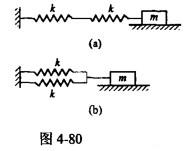 单项选择题 如图4-80所示两系统均作自由振动,其中图(a)系统的周期和图(b)系统的周期分别为( )。