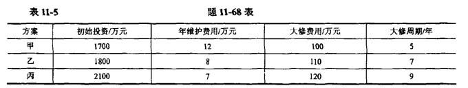 单项选择题 某永久性桥梁现有三个设计方案甲、乙、丙,各方案的初始投资额、年维护费用、 大修费用和大修周期见表11-5,基