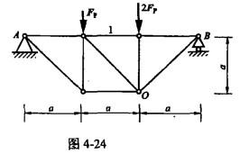 单项选择题 图4-24所示平面桁架的尺寸与载荷均已知。其中,杆1的内力大小Fs1为( )。