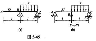 单项选择题 如图5-45所示二梁弯曲刚度EI相同,载荷q相同,则下列4种关系中,正确的为( )。