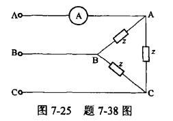 单项选择题 三相正弦交流电路如图7-25所示,对称负载接成三角形,己知电源电压UL=220V,每相阻抗Z=15+j16.1(Ω),当AB相断路时,电流表的读数是()A。