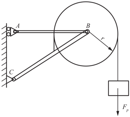 在图示结构(图)中,已知AB=AC=2r,物重Fp,其余质量不计,则支座A的约束力为( )。