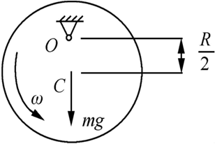 质量为m,半径为R的均质圆轮,绕垂直于图面的水平轴O转动,其角速度为ω。在图所示瞬时,角加速度为0,轮心C在其最低位置,