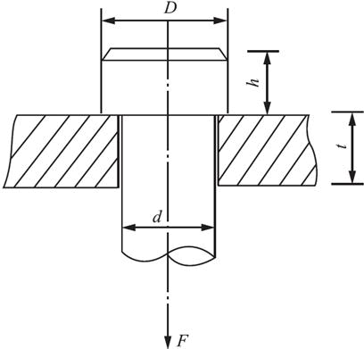 螺钉受力如图,已知螺钉和钢板的材料相同,拉伸许用应力[σ]是剪切许用应力[τ]的2倍,即[σ]=2[τ],钢板厚度t是螺钉高度h的1.5倍,则螺钉直径d的合理值是( )。