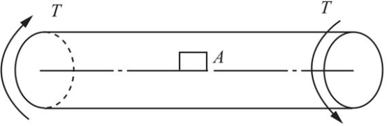 图(a)所示圆轴抗扭截面模量为WT,切变模量为G,扭转变形后,圆轴表面A点处截取的单元体互相垂直的相邻边线改变了γ角,如图(b)所示。圆轴承受的扭矩T为( )。