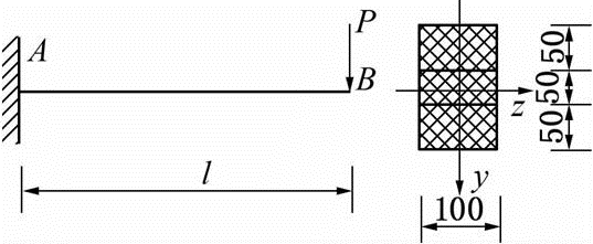 如图所示的悬臂梁由三块木板胶合而成,已知l=1m,若胶合缝上的许用应力[τ胶]=0.34MPa,木材的许用应力[σ]=10MPa,[τ]=1MPa,则此梁的许用荷载[P]应为( )。