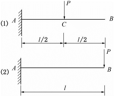 两梁除载荷外其余条件相同,则最大挠度比yB2/yB1为( )。