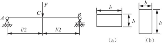 矩形截面简支梁中点承受集中力F。若h=2b,分别采用图(a)、(b)两种方式放置,图(a)梁的最大挠度是图(b)梁的(