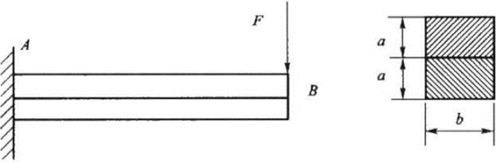 悬臂梁AB由两根相同的矩形截面梁胶合而成,若胶合面全部开裂,假设开裂后两杆的弯曲变形相同,接触面之间无摩擦力,则开裂后梁