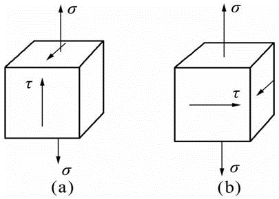 某塑性材料制成的构件中有如图 (a)、(b)所示两种应力状态,若σ与τ数值相等,用第四强度理论进行比较,则有( )。