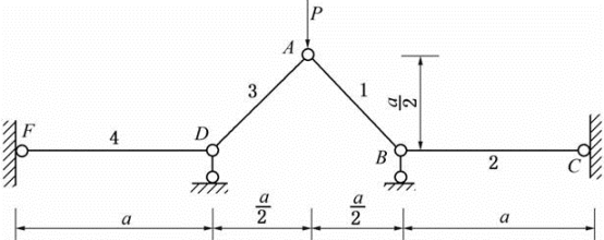 由细长压杆组成,各杆的刚度均为EI,则P的临界值为( )。
