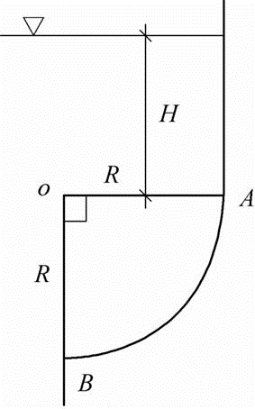 弧形闸门AB(1/4圆),闸门宽4m,圆弧半径R=1m,A点以上的水深H=1.4m,水面为大气压强。该闸门AB上静水总压