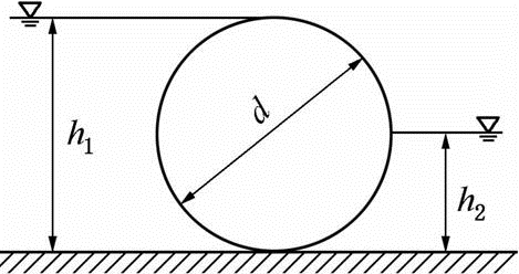圆柱体的直径d=2m,左侧水深h1=2m,右侧水深h2=1m,则该圆柱体单位长度所受到的静水总压力的水平分力和铅垂分力分