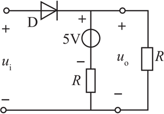 二极管应用电路如图所示,设二极管D为理想器件,ui=10sinωtV,则给出电压uo的波形为( )。