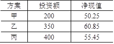 现有甲、乙、丙三个独立方案,且三个方案的结构类型相同,其三种投资额和净现值如表9-7-1所示。由于资金限额为750万元,