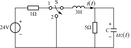 图示电路,t=0时,开关S由1扳向2,在t≤0时电路已达稳态,电感和电容元件的初始值i(0+)和uC(0+)分别是( )