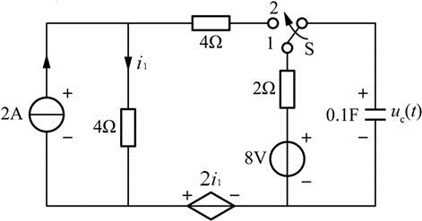 图示电路中,t=0时开关由1扳向2,t<0时电路已达稳定状态,t≥0时电容的电压uC(t)是( )。