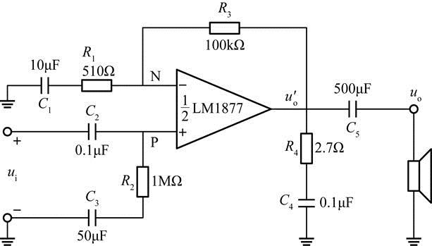 LM1877N-9为2通道低频功率放大电路,单电源供电,最大不失真输出电压的峰值UCPP=(UCC-6)V,开环电压增益