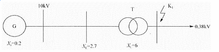 发电机、电缆和变压器归算至SB=100MVA的电抗标幺值如图所示,试计算图示网络中K1点发生三相短路时,短路点的三相短路