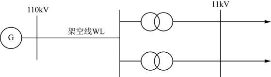 图示简单系统的额定电压为110kV双回输电线路,变电所中装有两台三相110/111kV的变压器。每台的容量为15MVA,