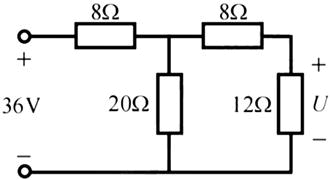 图示电路中,12Ω电阻两端电压U为( )。