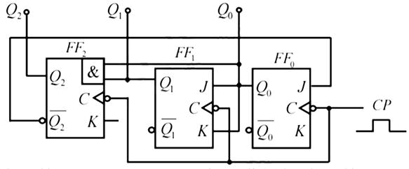 已知计数器电路如图所示,设三个触发器的初始状态为“000”,则该电路是( )。