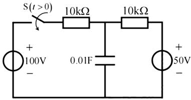 在如图所示的电路中,开关S闭合前电路已处于稳态,在t=0时,开关闭合,则电容电压uC(t)为( )。