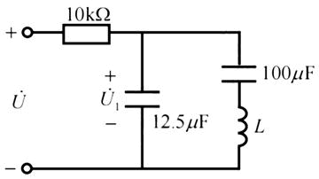 在如图所示的电路中,电压U含有基波和三次谐波,三次谐波角频率为3000rad/s,若要求U1不含基波,而将U中的三次谐波全部取出,则电感L数值为( )。