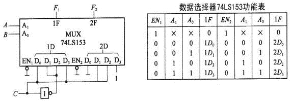 如图所示为双4选1数据选择器构成的组合逻辑电路,输入变量为A、B、C,输出F1(A、B、C),F2(A、B、C)的逻辑函
